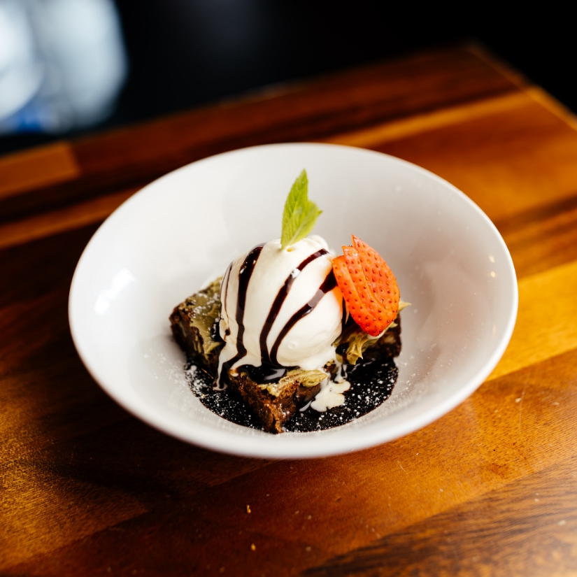 Churros, brownies, ice cream.